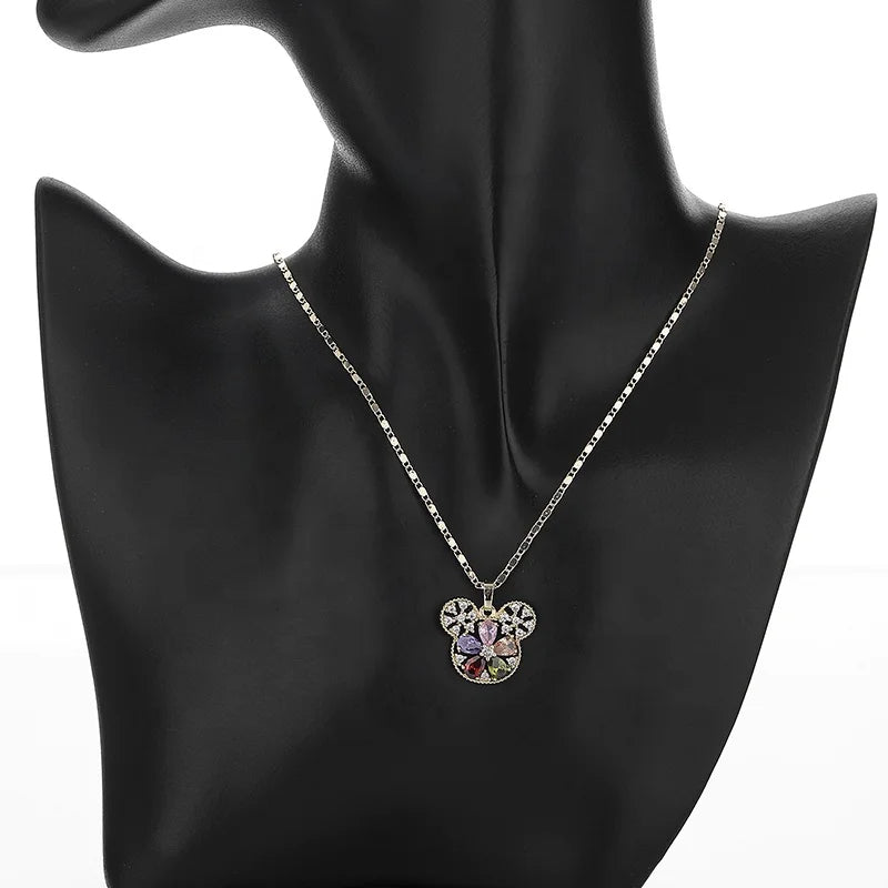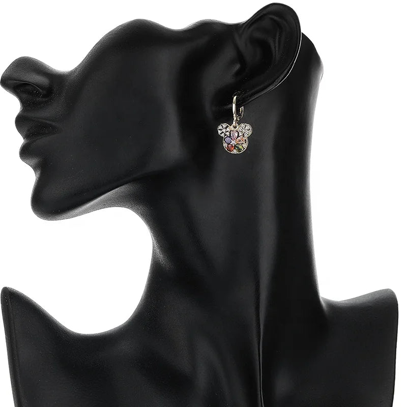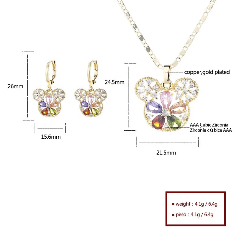 A trendy and playful jewelry set featuring a mouse-shaped pendant and earrings, beautifully inlaid with colorful AAA cubic zirconia. Perfect for weddings, parties, or as a thoughtful gift.