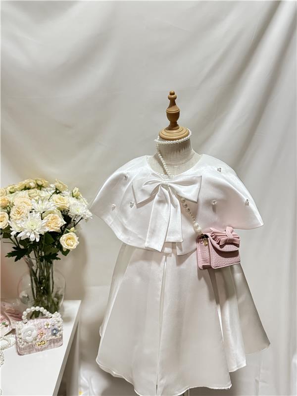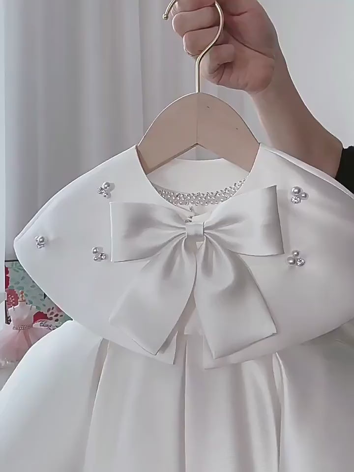 ●     ✨ Elegant white satin design with a statement bow at the chest